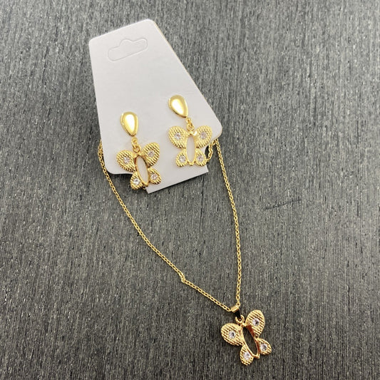 Conjunto Bijuteria Borboleta - Colar e Brinco Banhados
