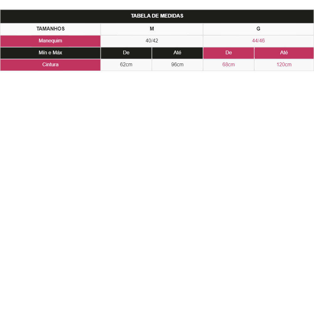 Cintura: de 62cm até 96cm